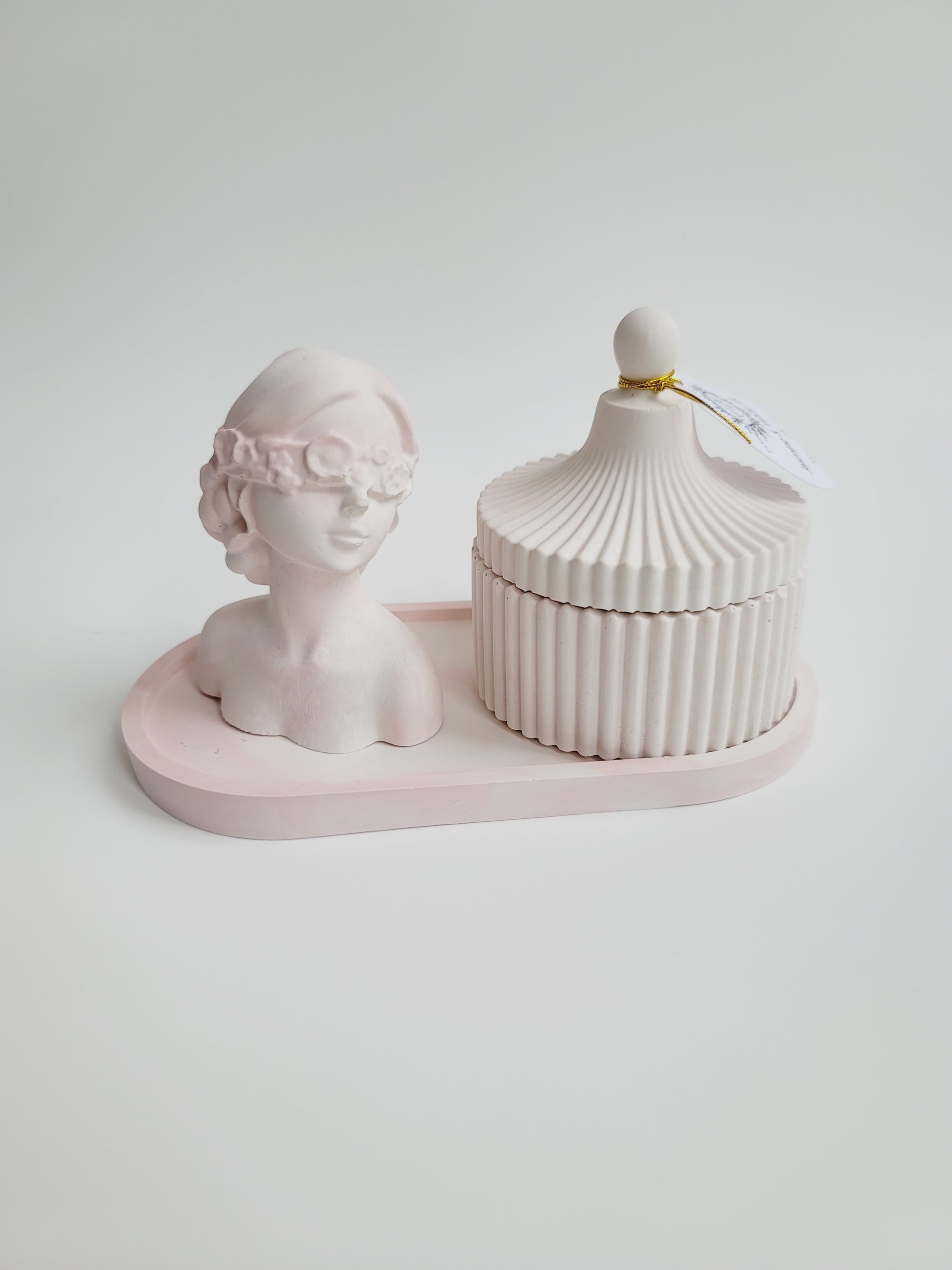 Cement Table Decor Candle Set - Girl with Blindfold - Pink
